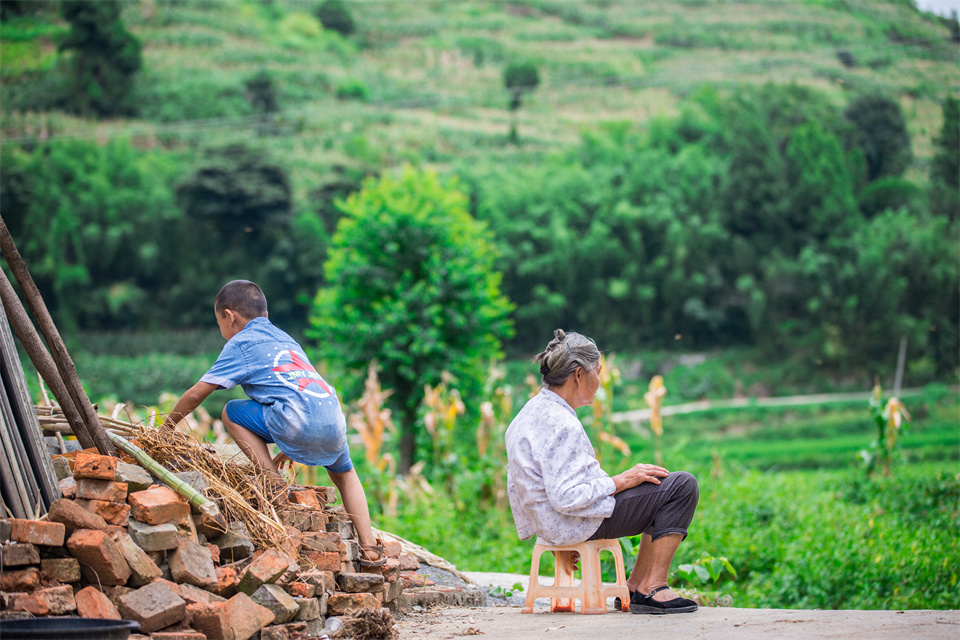 7月底,盛夏。播州区团溪镇大片水稻田里,水稻正在扬花,蜻蜓穿行。81岁的姚桂珍背着背篓,带着7岁的孙子在镇上赶了集,正打算回家。山里到镇上,四块钱的车费,她却宁可走上一个小时。她一生去过最远的地方是县城女儿的家。